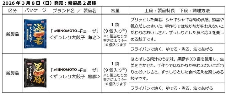 2026年1月6日発表リリース『「AJINOMOTO BRANDギョーザ」が進化 ラインナップを拡充し“もっと手軽に、もっとおいしく”食卓へ』