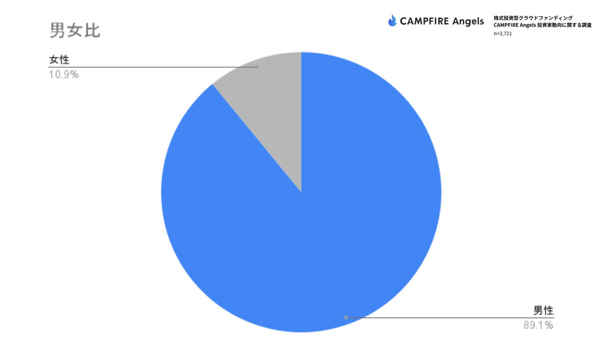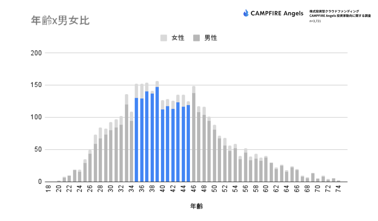 登録投資家の基本属性としては、89.1%が男性、10.9%が女性となりました。年齢を加えると「39歳男性」が最も多く、次いで「37歳男性」「38歳男性」という分布となっております。