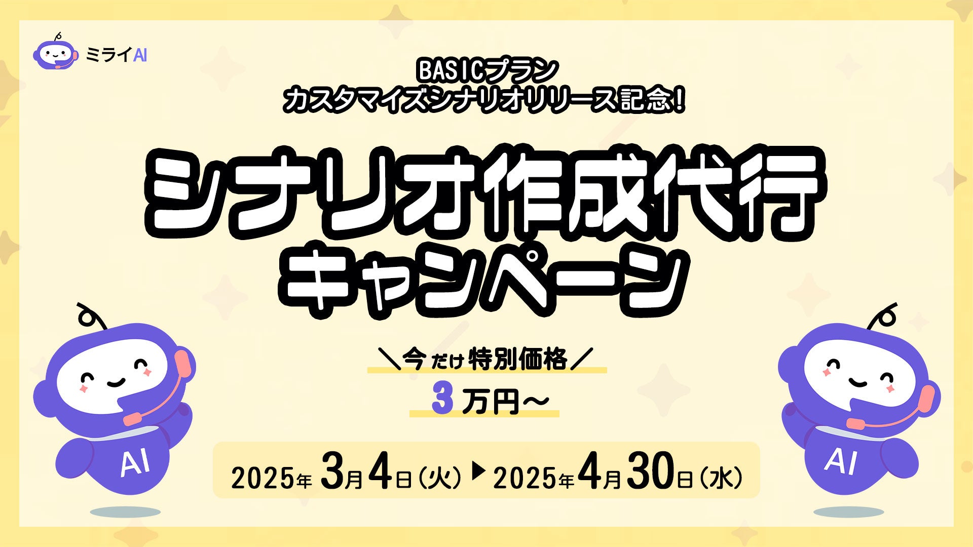 【4月30日まで期間限定!】ミライAI「シナリオ作成代行キャンペーン」を開始!