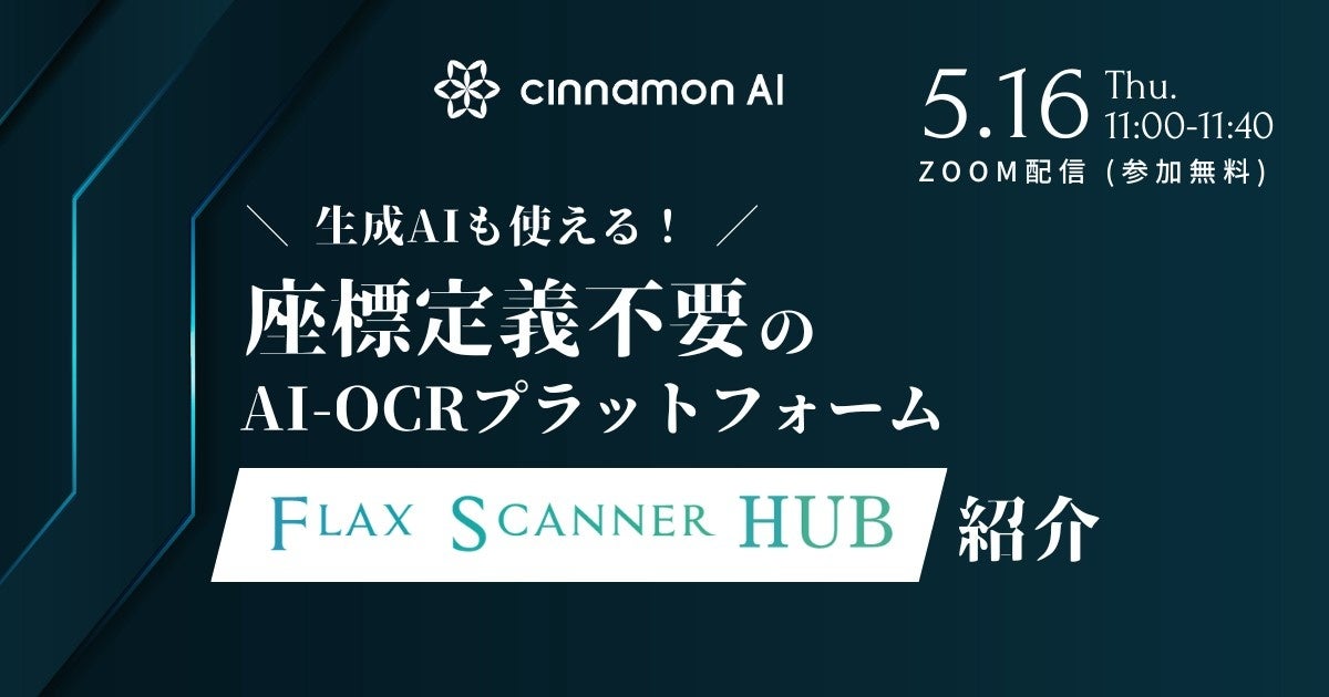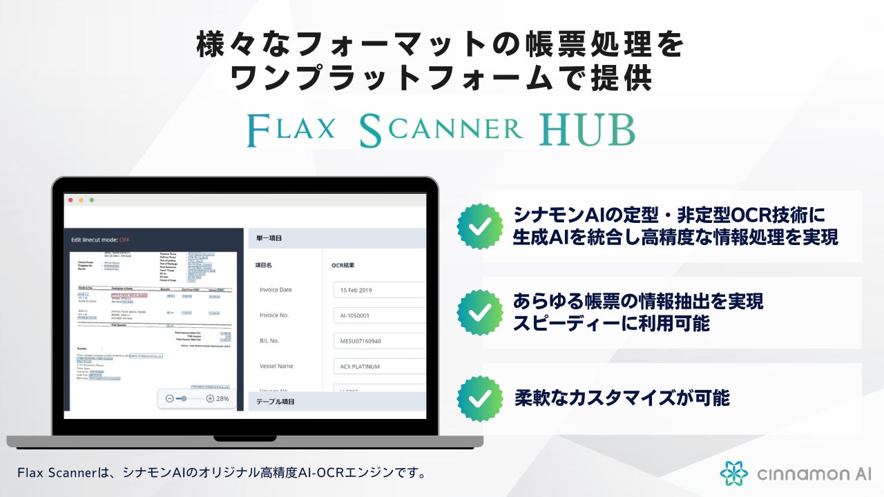 シナモンAI、「Flax Scanner HUB」を正式リリース!AI-OCR x 生成AIであらゆる帳票の情報抽出を実現。企業のデータ活用を大幅に拡張する定型・非定型対応AI-OCRプラットフォーム