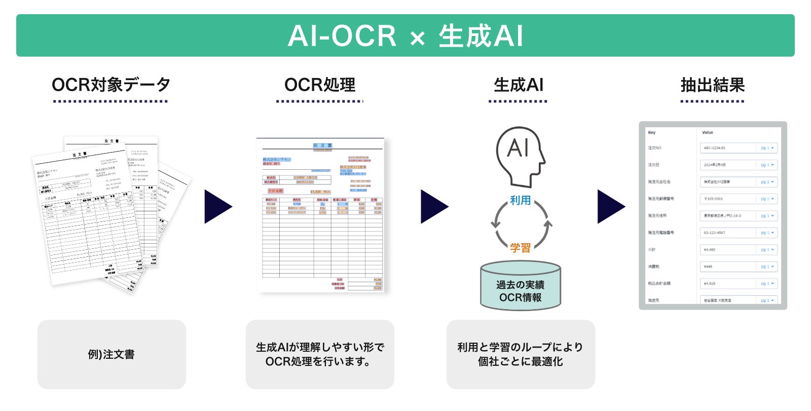 AI-OCRに生成AIの ”ノーコード学習機能” を統合することで、帳票定義なしで非定型帳票の情報抽出精度 94%*を実現