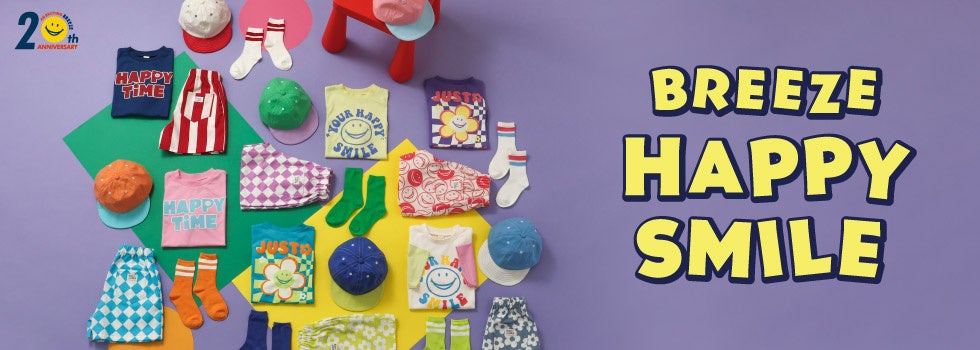 20周年というアニバーサリーイヤーのファイナルとして、BREEZEのSHOPコンセプトにもある「HAPPY SMILE」をコンセプトにした商品を、全国のBREEZE店舗とオンラインストアにて7/9(火)より販売いたします。