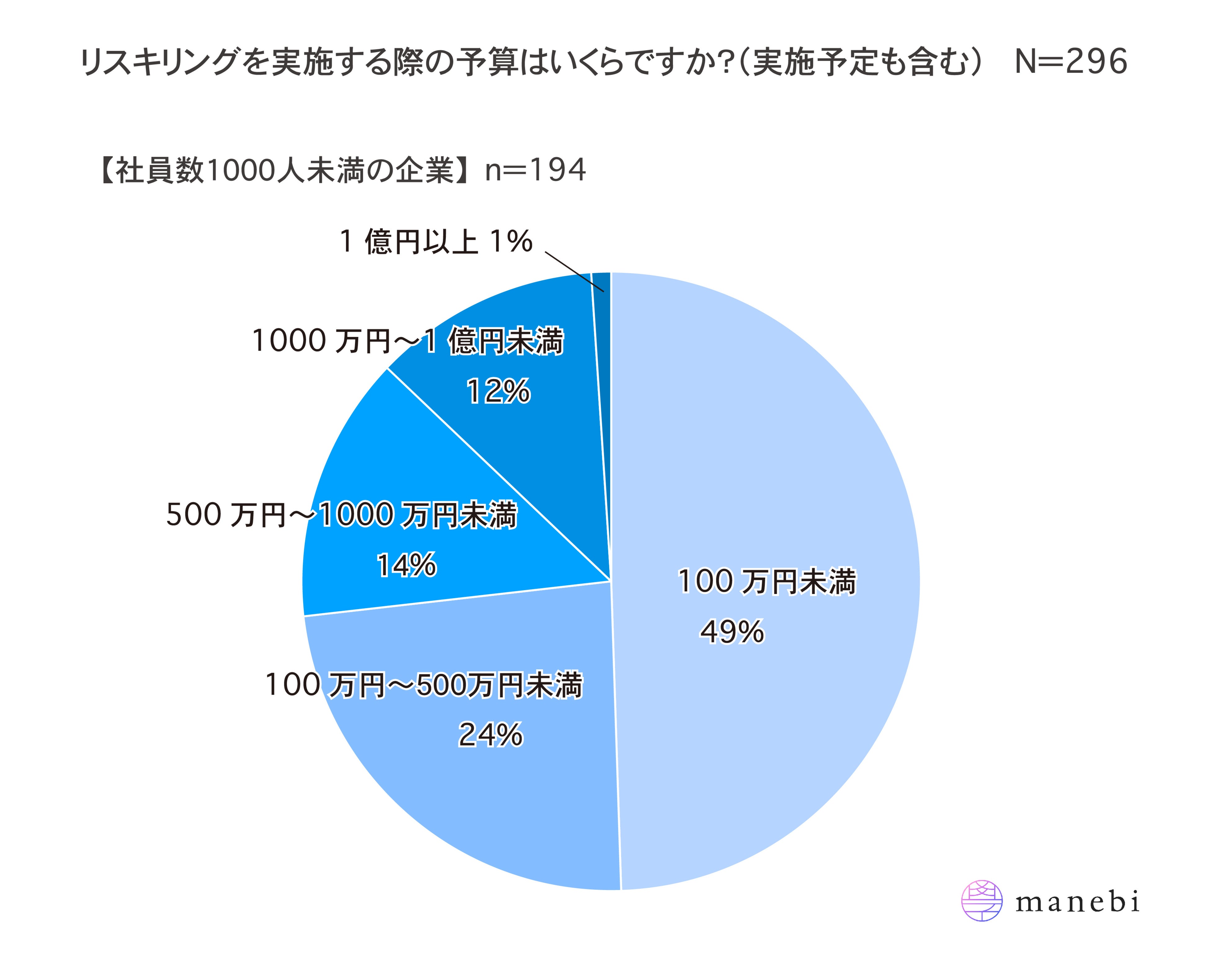 - 社員数1000⼈以上の企業では、リスキリング予算1億円以上が2割
