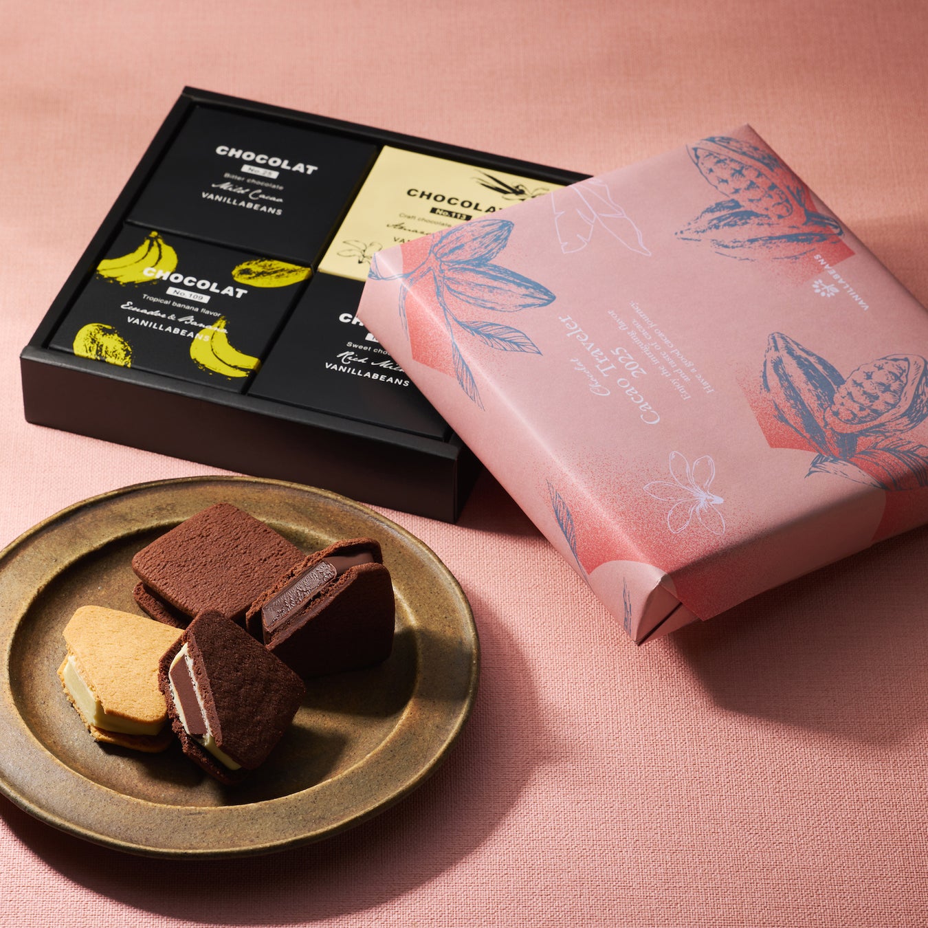 横浜発のクラフトチョコレート専門店VANILLABEANS(バニラビーンズ)を運営するチョコレートデザイン株式会社(代表取締役:大槻昌弘、本社所在地:横浜市)は、百貨店・専門店の生チョコクッキーサンド売上No.1(※)を獲得した「ショーコラ」のバレンタイン限定、プレミアムシリーズ「カカオトラベラー2025」を2024年12月26日(木)からオンライン先行受付がスタートいたします。商品お届けは2月2日(日)以降、実店舗では1月23日(木)から対象店舗にて販売を行います。