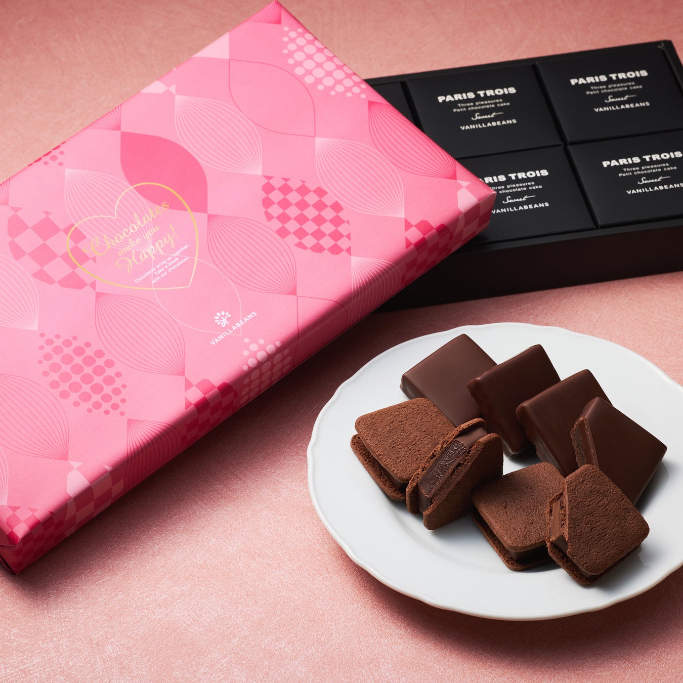 ⽣チョコクッキーサンドの『ショーコラ』と、3層のチョコレートが織りなす濃厚な味わいの『パリトロ』の2種類が入った⼈気ギフトからバレンタイン時期に合わせた華やかなパッケージが登場します。