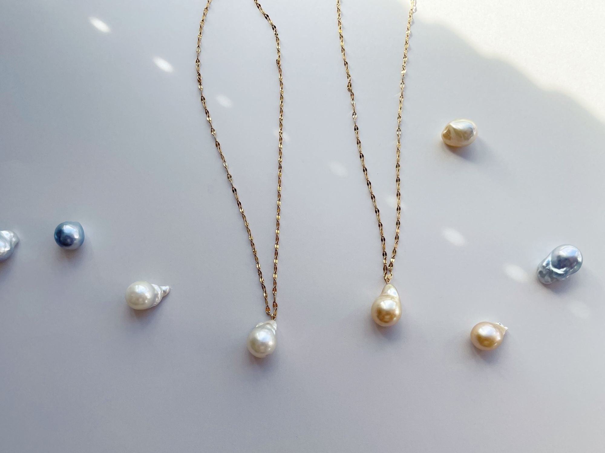 天然の美しいニュアンスカラーが絶妙な抜け感を放ち、唯一無二の造形美に心惹かれる 南洋白蝶バロックパール。大ぶりのジュエリーをさらりと身に着け、上質感がありながらも軽やかなスタイルに魅せる。そんな "こなれ感"と優美さが香る、大人のためのパールコレクションです。
