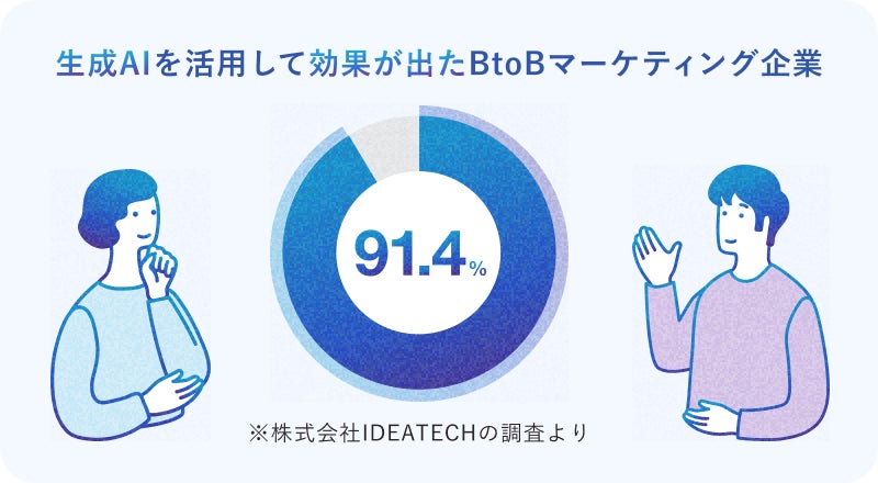 IDEATCHの調査では生成AIを活用して効果が出たBtoBマーケティング企業が9割を超えるなど、実際に株式会社BLAMが運営するマーケティング領域に特化した複業マッチングサービス「カイコク」では、AI活用人材の案件の募集や相談が増加しています。