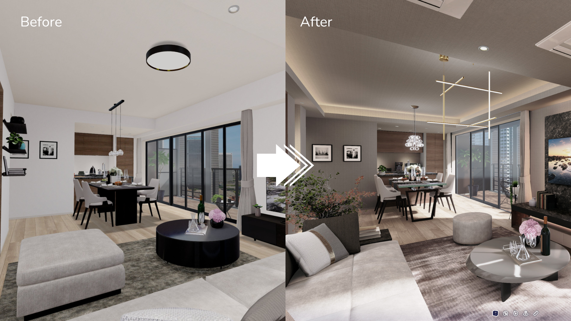 よりリアルなインテリアサンプルの陰影表現や、向上したディティールの再現により、従来以上に臨場感のある内覧体験をすることができます。