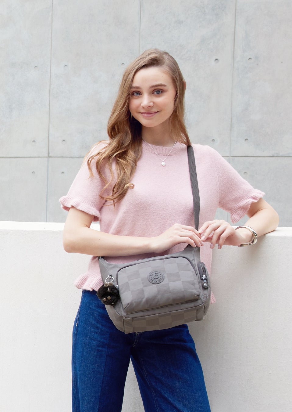 2026年春夏の日本限定コレクション「Inviting Gr Emb」は、日本の伝統柄である「市松模様」をモチーフにした総柄デザインが特長です。このパターンは、図柄が途切れることなく続いて行くことから「永遠」「発展」「繁栄」を象徴する縁起の良い模様として親しまれてきました。本コレクションではその伝統的な「市松模様」をキプリングらしい感性で再構築し、濃淡が引き立つエンボス加工で仕上げています。