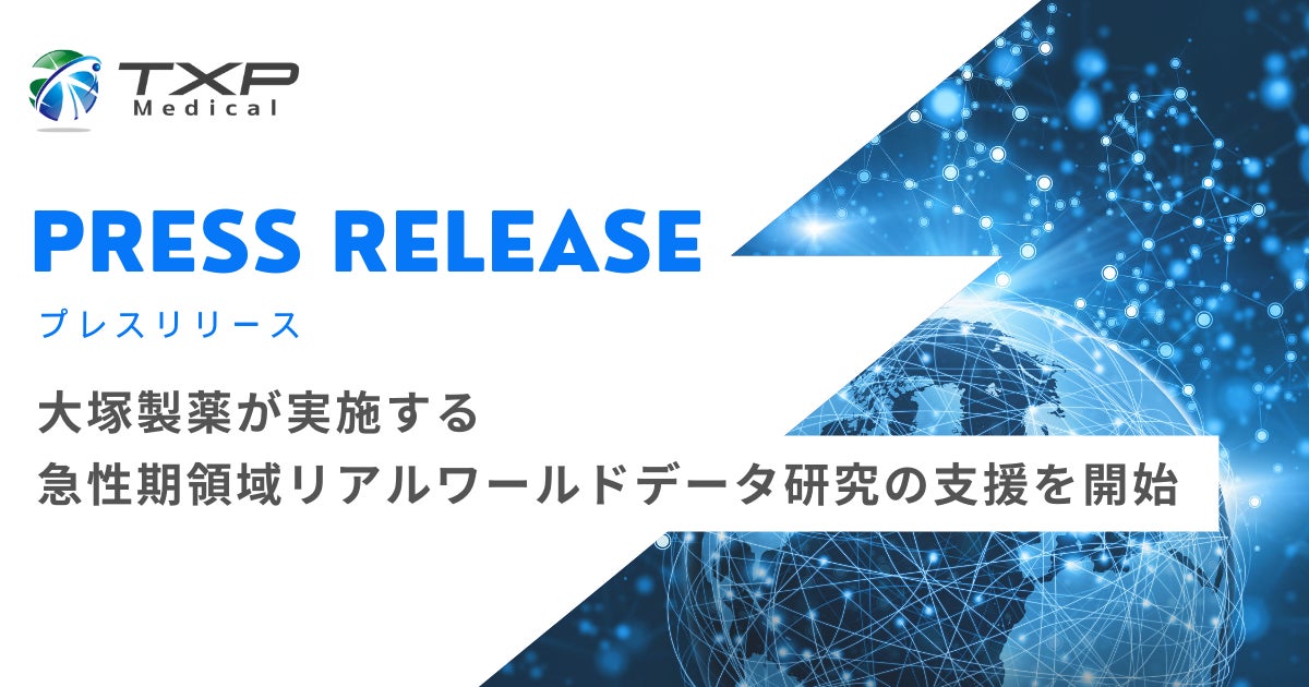 TXP Medical株式会社(代表取締役CEO:園生智弘、以下、TXP Medical)は、大塚製薬株式会社(以下、大塚製薬)が実施する患者背景や薬剤使用実態などの調査を目的としたリアルワールドデータ(以下、RWD)研究(以下、本研究)の支援を開始しました。