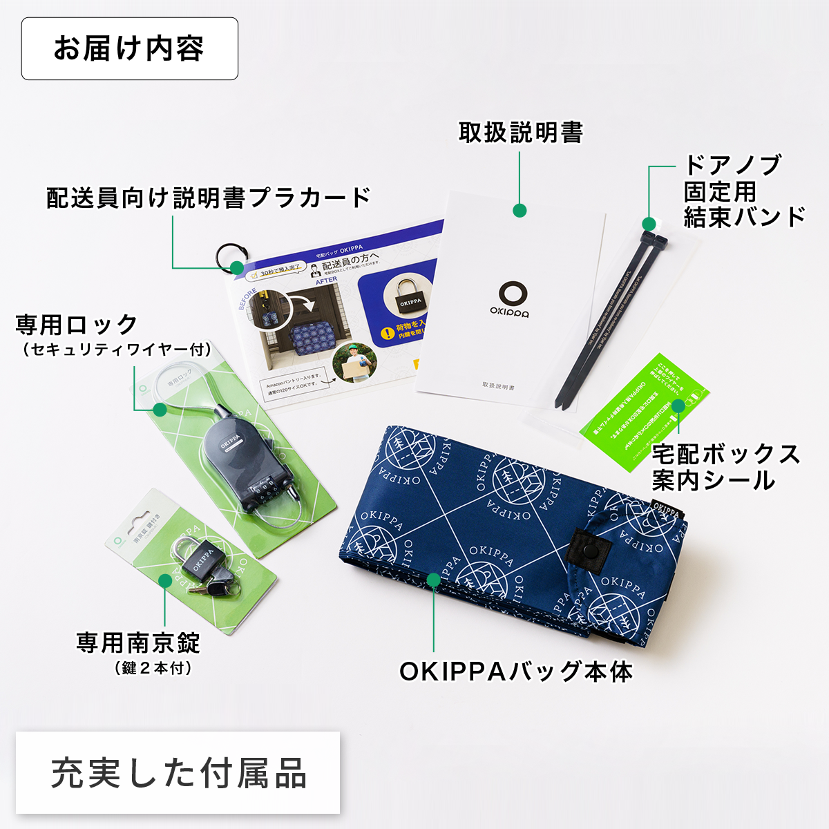 品名:OKIPPA(バッグ・専用ロック・内鍵、専用バンド、取扱説明書他7点セット)
