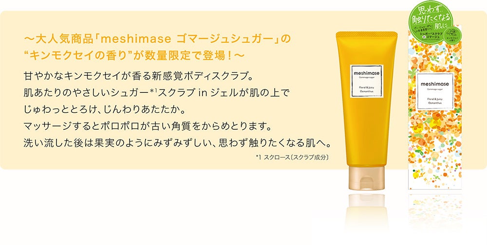数量限定キンモクセイの香り「meshimase ゴマージュシュガー オスマンサス」がロフト主催イベント【ロフト コスメフェスティバル 2022AW -1st-】に登場!