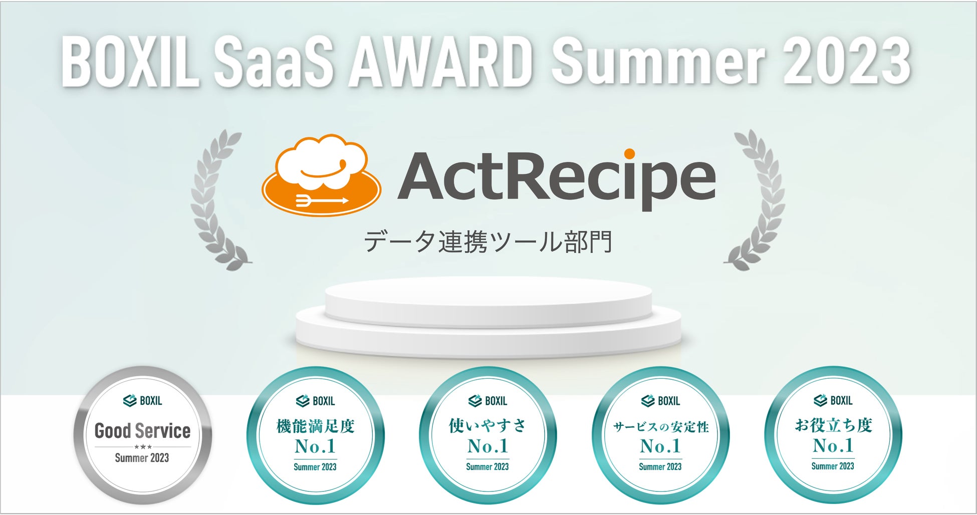 iPaaS「ActRecipe」、「BOXIL SaaS AWARD Summer 2023」データ連携ツール部門にて「Good Service」ほか4つのNo.1を受賞