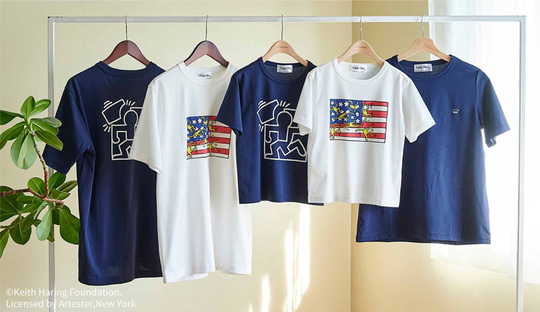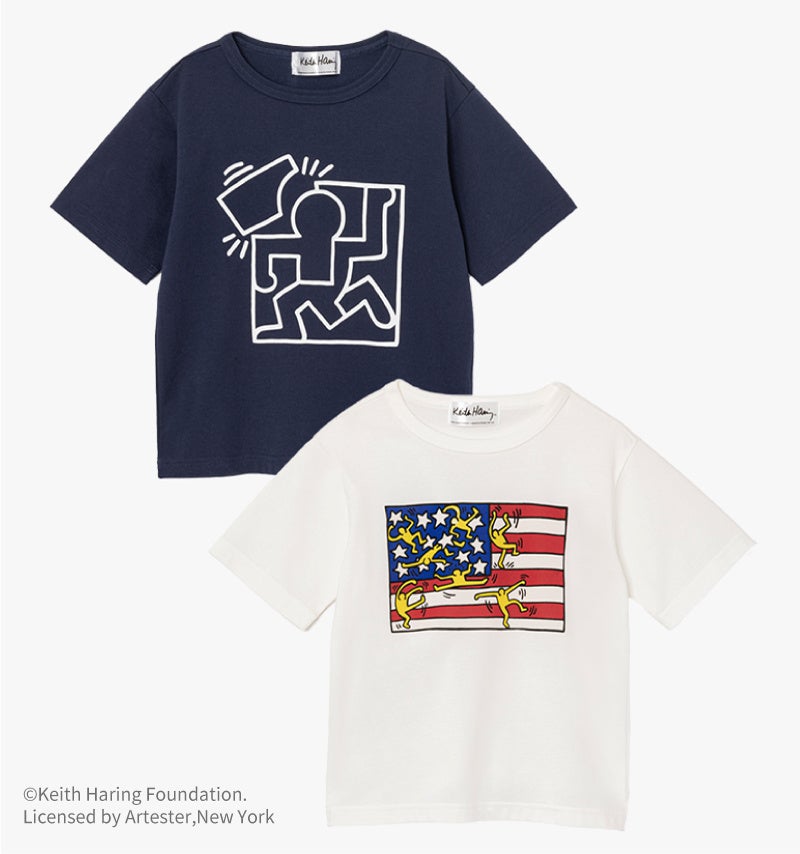 キース・へリングが残した数多くのグラフィックアートから、Tシャツのプリントに2種をセレクト。