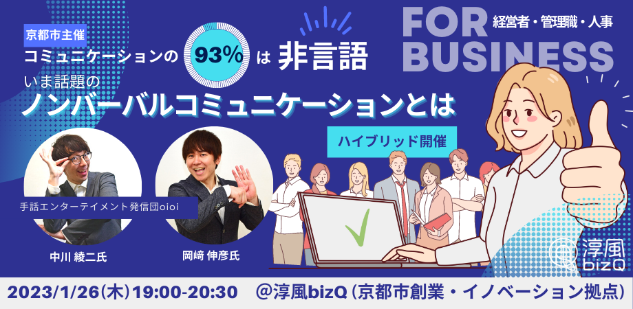 株式会社ツクリエ(本社:東京都千代田区 代表取締役:鈴木英樹 以下、ツクリエ)が京都市創業・イノベーション拠点運営協議会から受託する京都市スタートアップ拠点「淳風bizQ」で、ビジネスにおいて必要不可欠なコミュニケーション能力の向上を目的とした「ノンバーバル(非言語)コミュニケーション講座」を、東京2020 パラリンピック開会式にも出演したプロパフォーマーを講師に迎え、1月26日(木)に開催します。