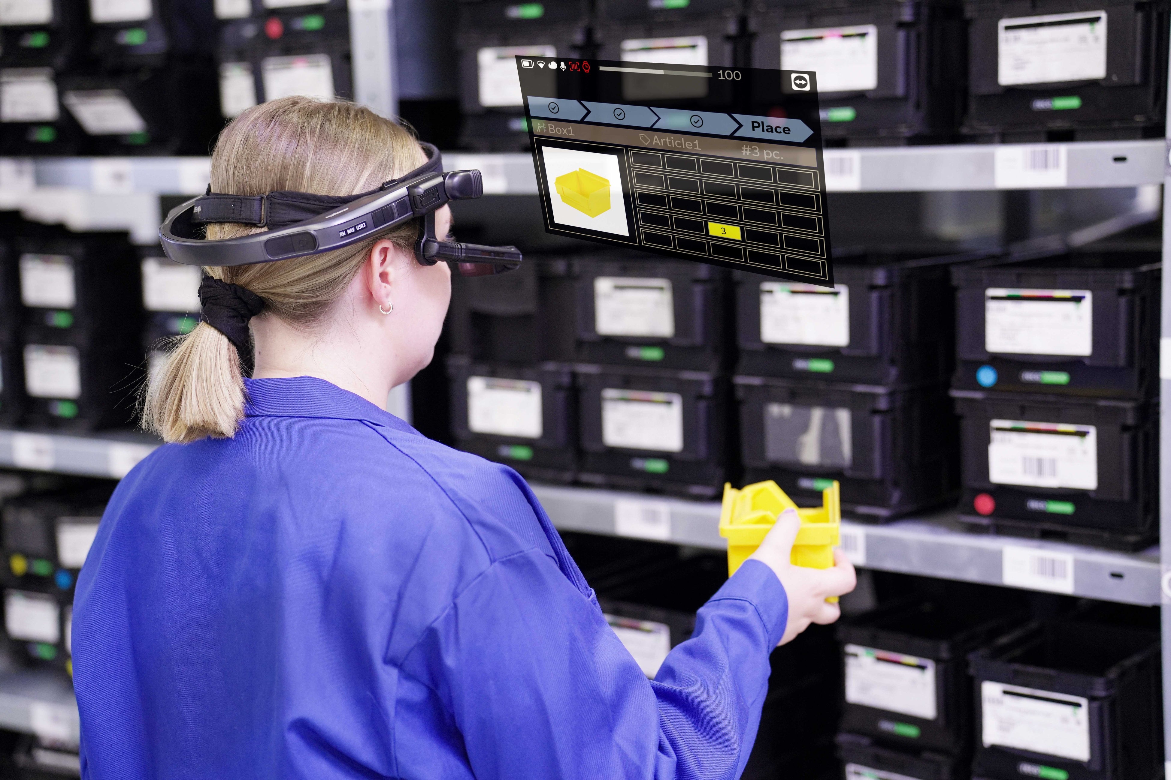 ビジョンピッキング(またはピックバイビジョン)とは、拡張現実を利用した物流プロセスと倉庫管理のデジタル変革を可能にするコンセプトです。倉庫のオペレーターは、注文や在庫データに関する視覚情報をウェアラブルデバイスで受け取ることができます。統合された音声またはスキャン・コントロールと組み合わせることで、操作はハンズフリーとなり、オペレーターはより少ないエラーでより速く作業することができます。ビジョンピッキングでデジタル化・近代化できる倉庫プロセスには、手作業によるオーダーピッキング、梱包・仕分け、順序付け・キッティング、在庫管理、補充・入出庫などがあります。