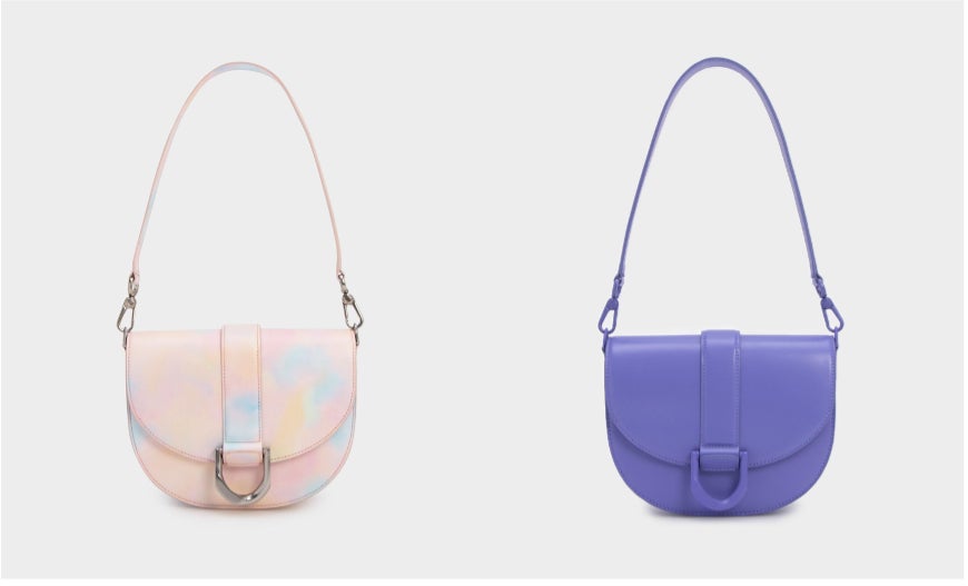 多くのセレブリティにも愛用されている『Gabine ガビーヌ』『Charlot シャーロット』『Philomena フィロミーナ』といった、CHARLES & KEITHのアイコニックなバッグを、カラフルで実験的なデザインで再構築しています。流体が入り交じるようなユニークなスワールプリントにシルバーの金具をあわせたMultiと、全体をボールドなマットカラーで統一したPurpleの2色展開です。