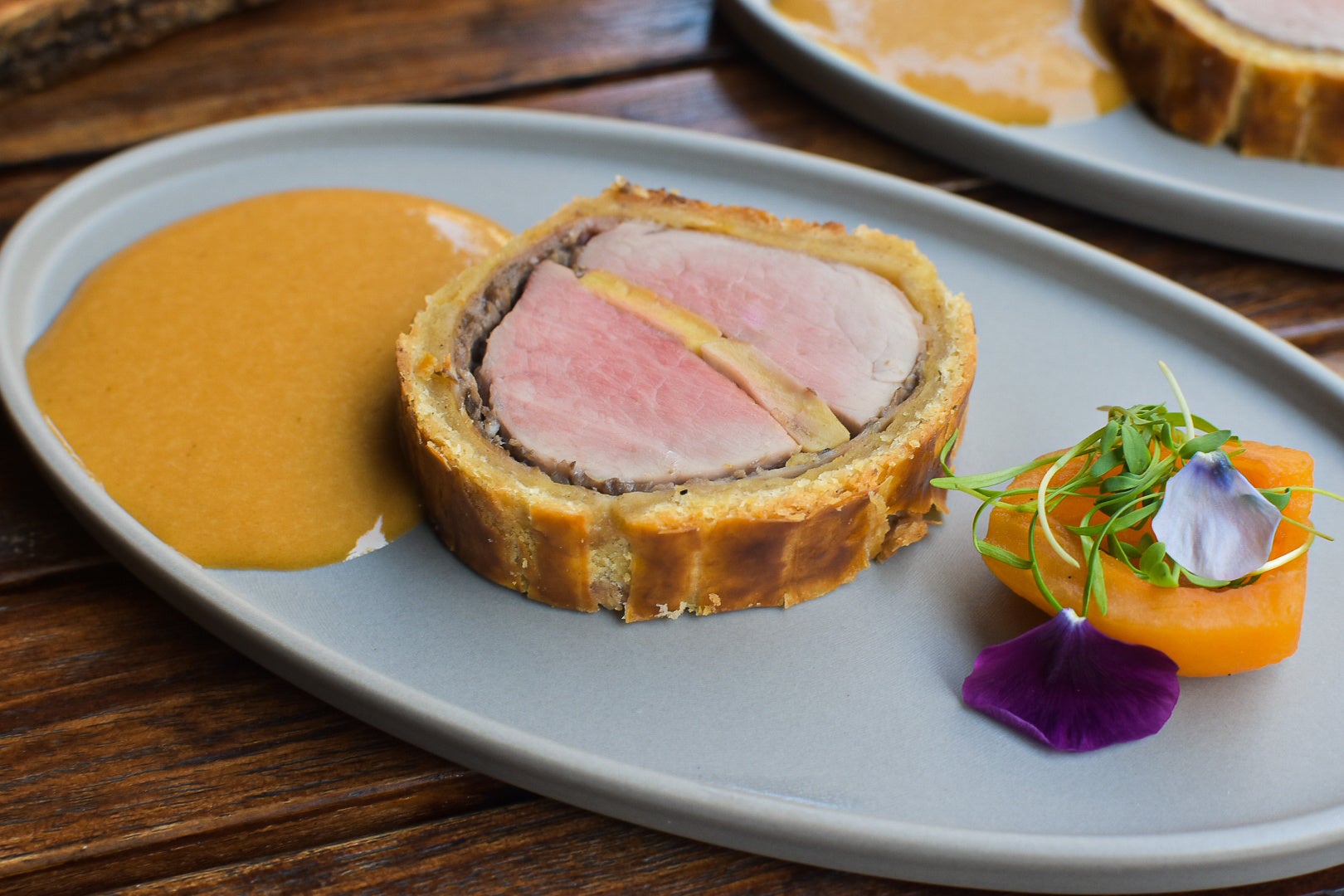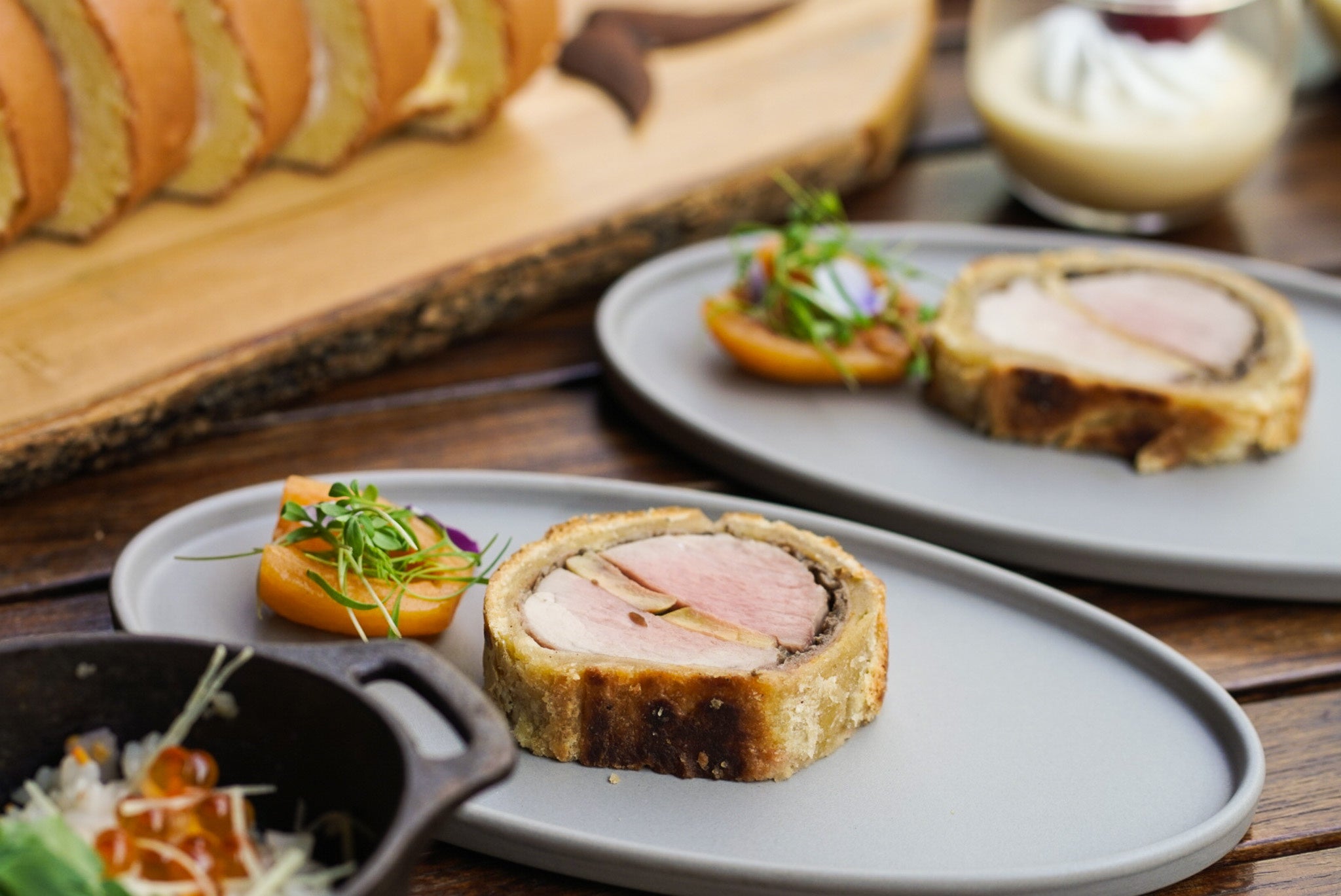 テーブルサービスでご用意するのは、高級食材として知られるフォアグラをはじめ、旨味たっぷりの贅沢な食材をサクサクのパイ生地で包み、焼き上げた「豚フィレ肉とフォアグラのパイ包み ポワブラードソース」です。