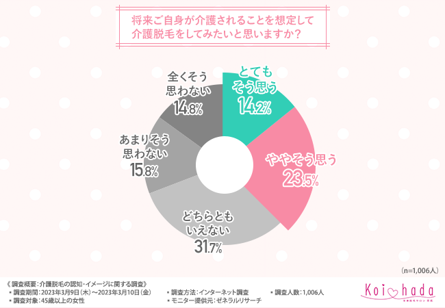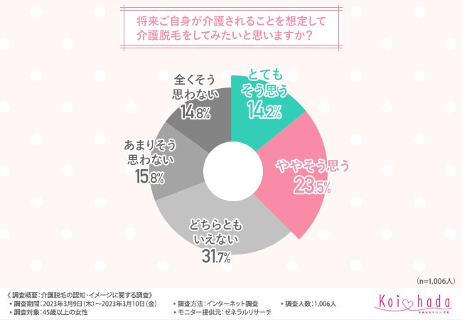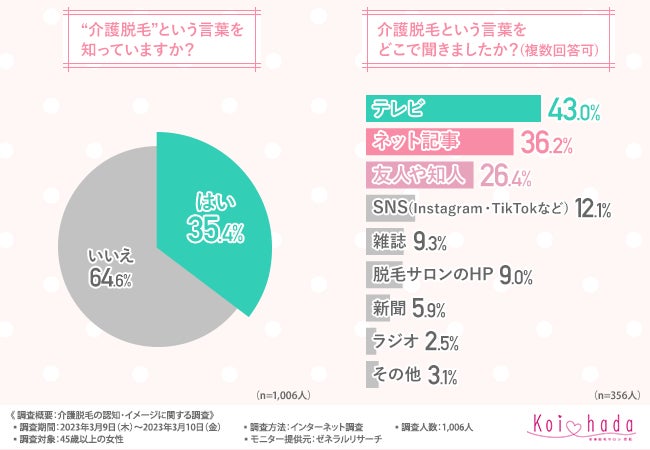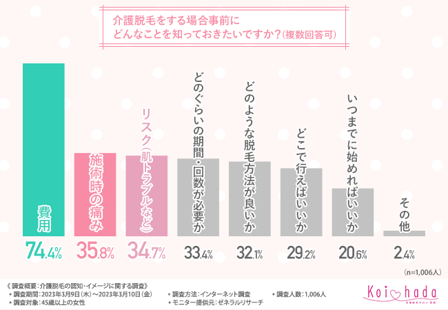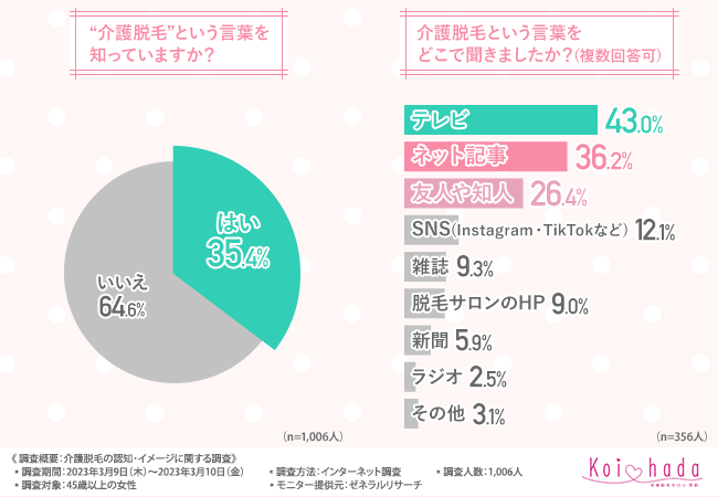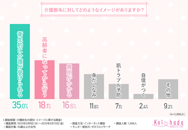 そこで今回、脱毛サロン「恋肌」(https://www.koi-hada.jp/lplj_lv/lp03/?refmedia=142)は、45歳以上の女性を対象に、介護脱毛の認知・イメージに関する調査を実施しました。