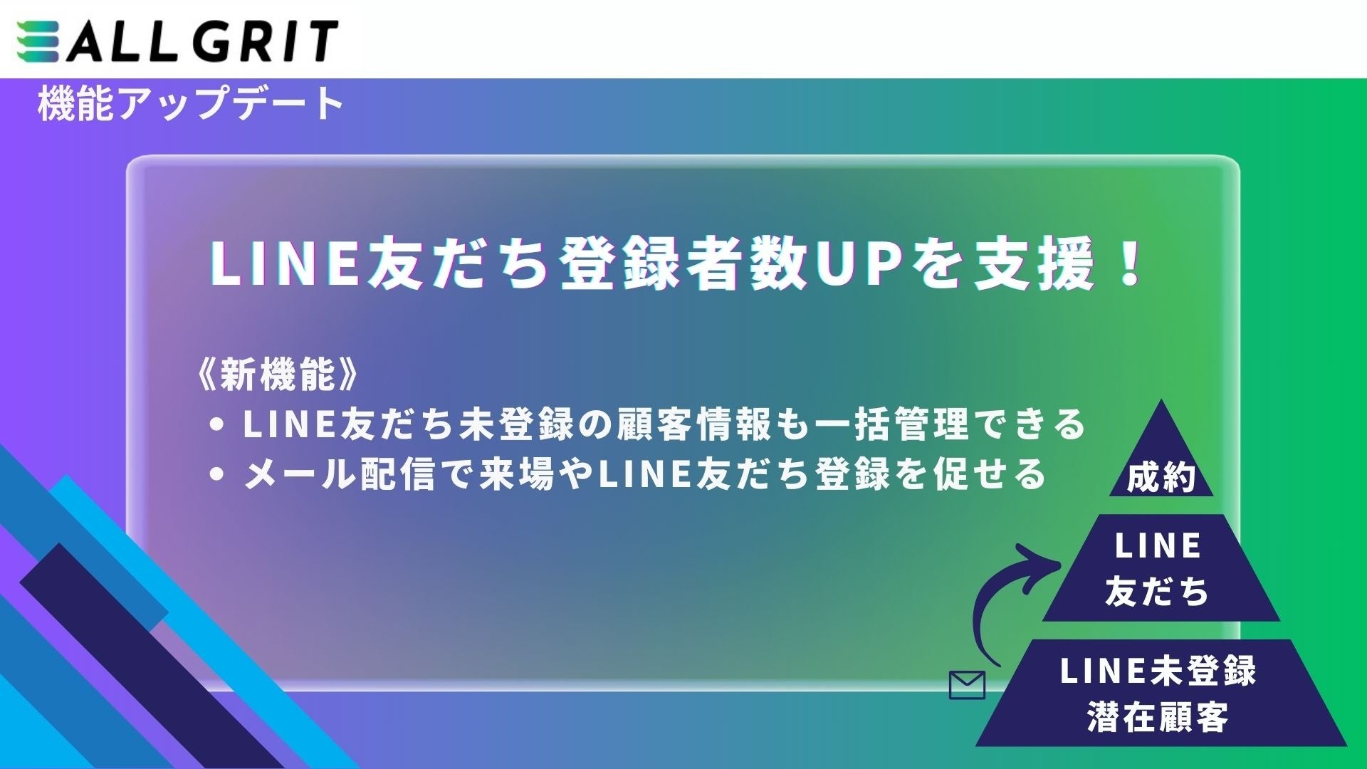 【新機能リリース】LINE友だち登録者数UPを支援!友だち未登録顧客へメールでアプローチが可能に|LINE運用による住宅・不動産業界向けMAツール(マーケティングオートメーション)《ALL GRIT》