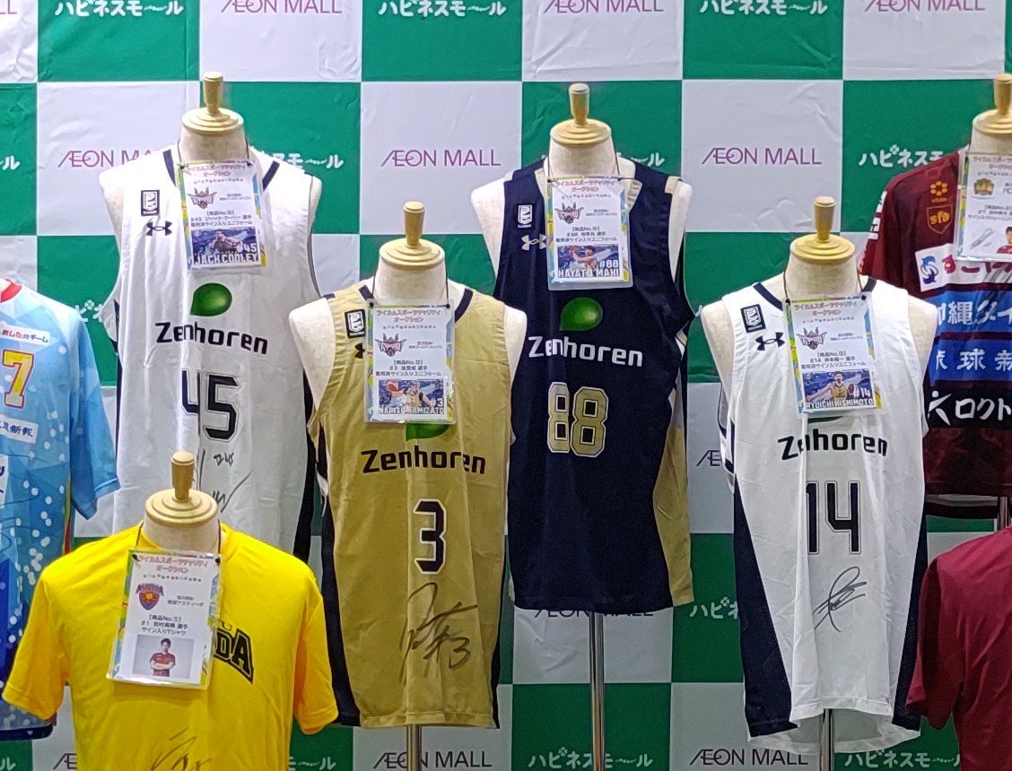 キングスからは、#3並里成選手、#14岸本隆一選手、#45ジャック・クーリー選手、#88牧隼利選手が実際に試合で着用したサイン入りユニフォームを出品しております。ぜひこの機会にイオンモール沖縄ライカムに足をお運びいただき、チャリティイベントにご参加ください。