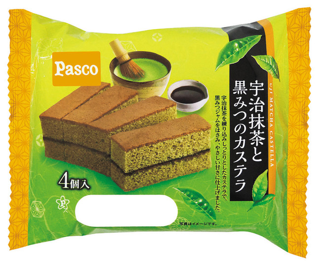 宇治抹茶を練り込んだしっとりとしたカステラで黒みつジャムをはさみ、やさしい甘さに仕上げました。