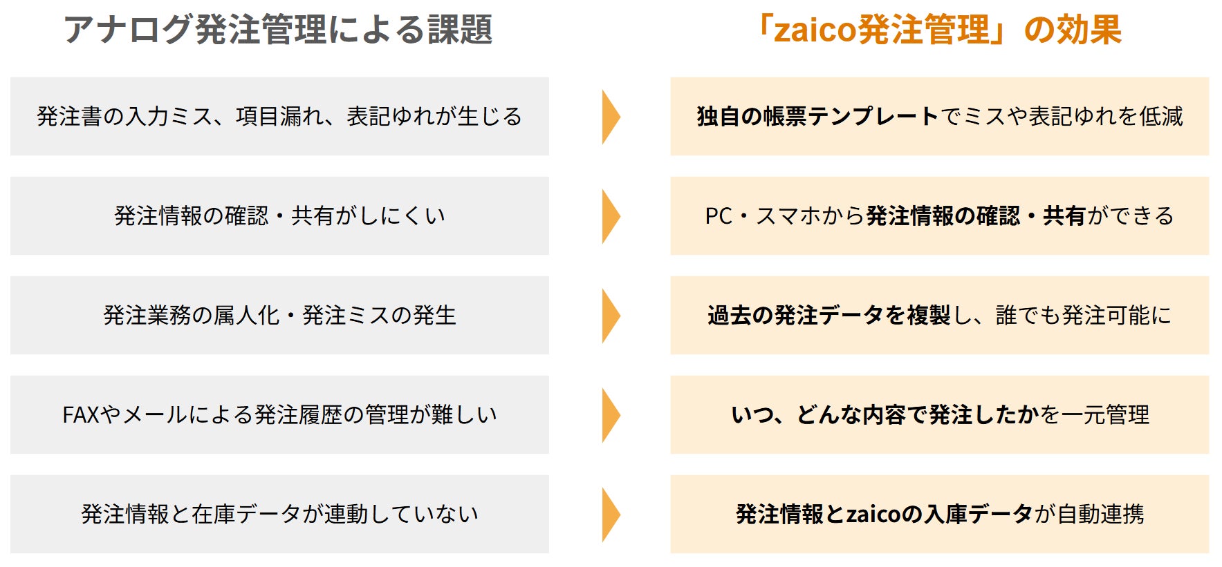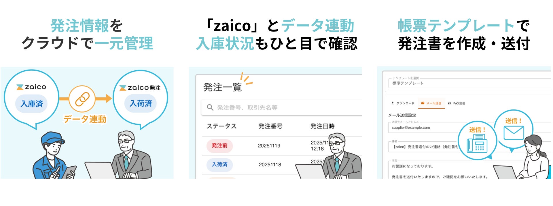 こうした状況を踏まえ、当社は2025年10月に「zaico受注管理」を先行リリースし、受注業務のデジタル化に取り組んでまいりました。今回の「zaico発注管理」は、その流れを継ぎ、発注業務の効率化を実現するサービスとして提供を開始するものです。