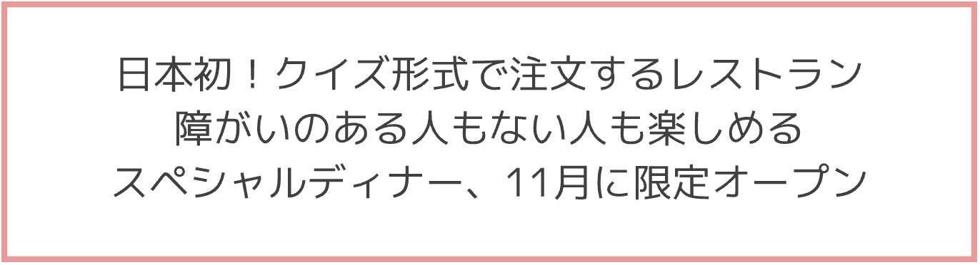日本初!クイズ形式で注文するレストラン障がいのある人もない人も楽しめるスペシャルディナー、11月に限定オープン