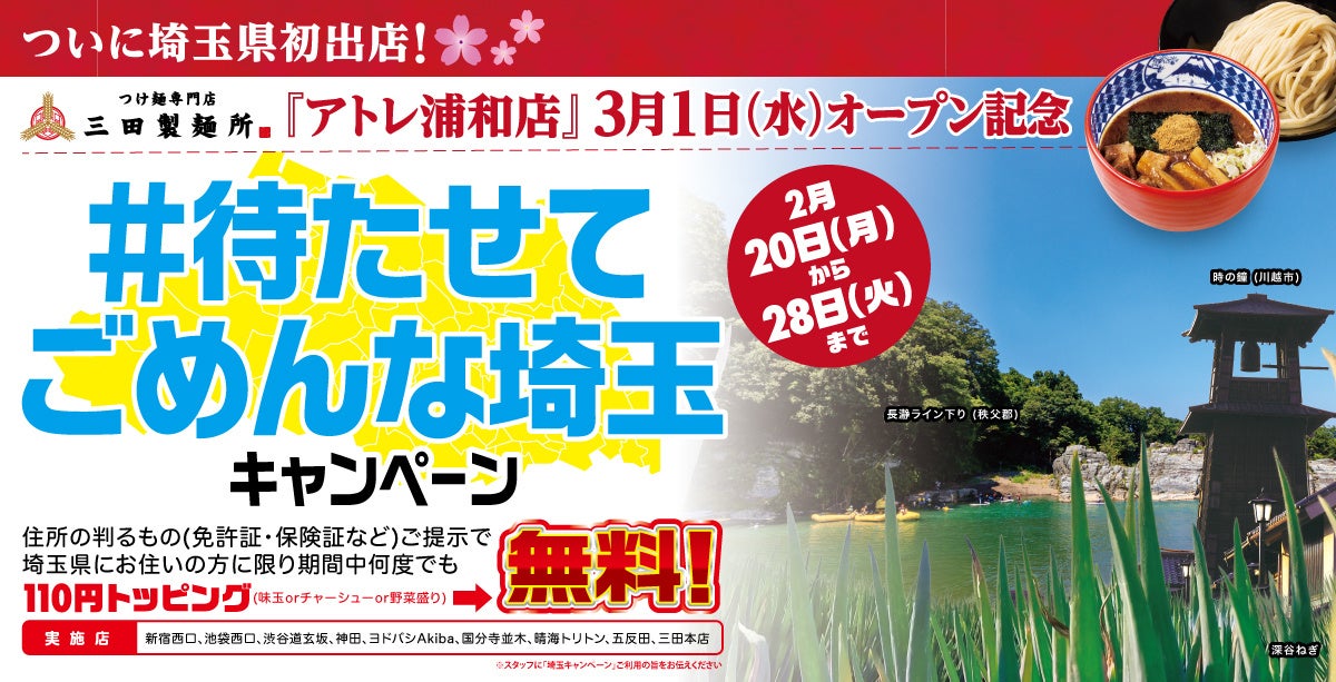 ■OPEN記念キャンペーン③ 都内9店舗にて『#待たせてごめんな埼玉 キャンペーン』開催