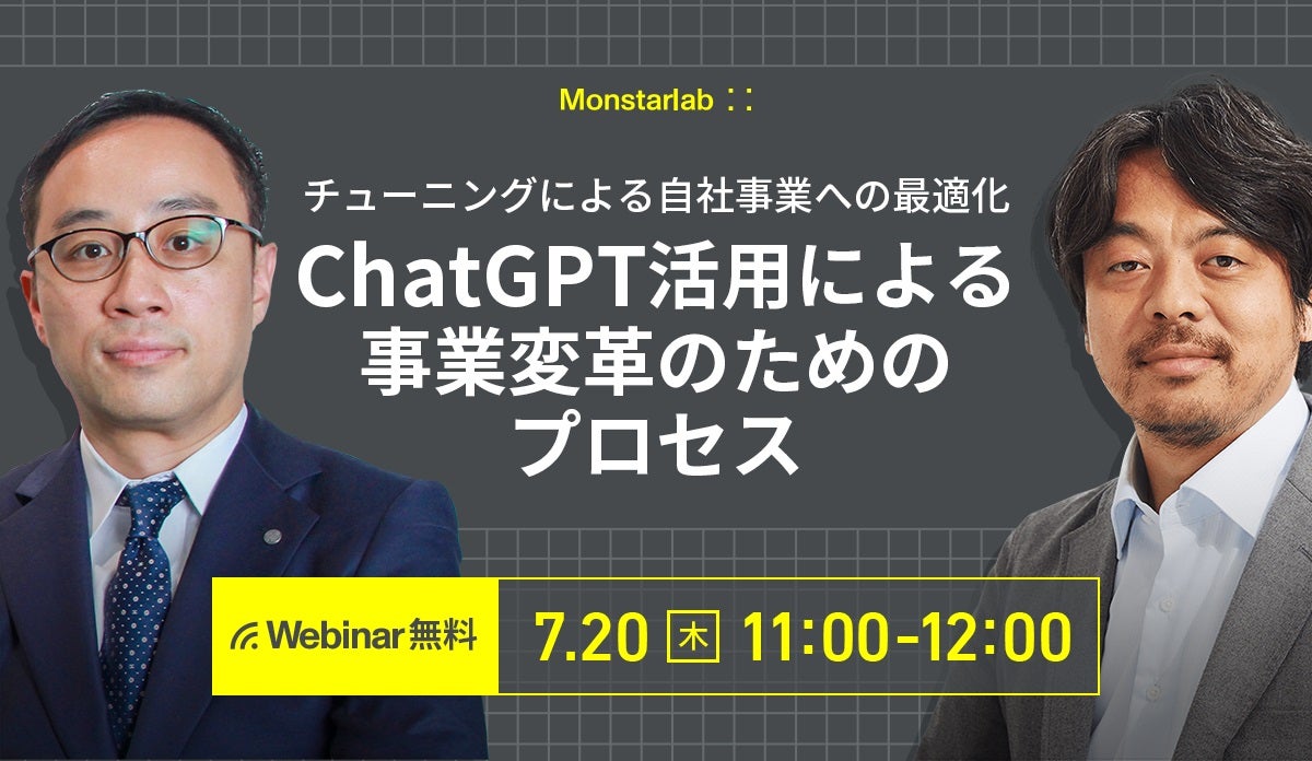 【モンスターラボ ウェビナー】『チューニングによる自社事業への最適化 ChatGPT活用による事業変革のためのプロセス』を7月20日(木)11時より開催