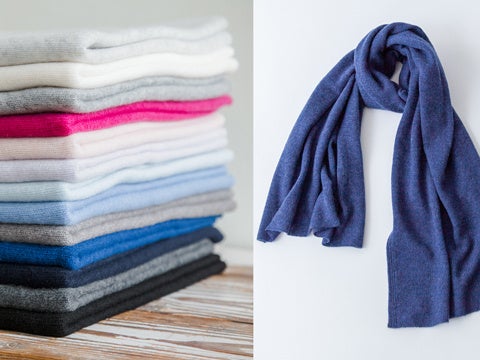 最上級の1等級カシミヤを100%使用。ふわふわのカシミヤが首周りをやさしく、あたたかく包みこんでくれます。大判は首に巻くだけでなくショールやひざ掛けとしても大活躍。