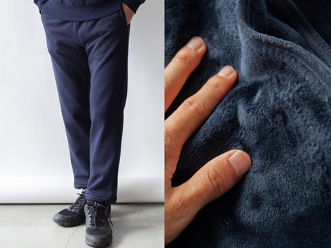 まるでシルクのような心地よい肌触り。もふもふのブランケットのような裏起毛で寒さ知らず。すっきりシルエットで街着にも自宅のぬくぬくウェアとしても使えるパンツとして大人気。