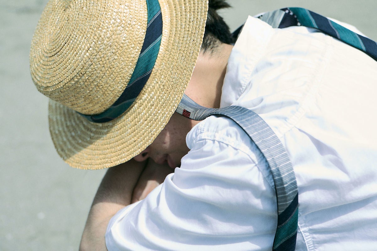 hagu=接ぐ。眠っている回収したネクタイを分解・再構築し、1点物のお洋服にするブランドです。