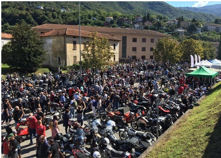 パンデミックにより1年延期されたこの100周年記念イベントは、数年前から聖地巡礼を計画していた多くのグッツィストにとって参加必須のイベントとなり、ラーリオの川のほとりの施設はすべて満室となりました。実際、マンデッロ・デル・ラーリオでのイベントには6万人以上ものファンが集い、その多くは世界中から自身のバイクに乗り来場しました。ヨーロッパ各国はもとより、アメリカ、南米、オーストラリア、インドネシアなどからの参加もありました。