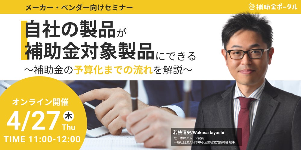 株式会社補助金ポータル(本社:東京都渋谷区、代表取締役:福井彰次 以下、補助金ポータル)は辻・本郷 税理士法人(事務所:東京都新宿区、理事長:徳田孝司)の常任顧問であり、同グループの辻・本郷ビジネスコンサルティング株式会社の筆頭取締役の若狹清史氏と共にオンラインセミナーを開催します。