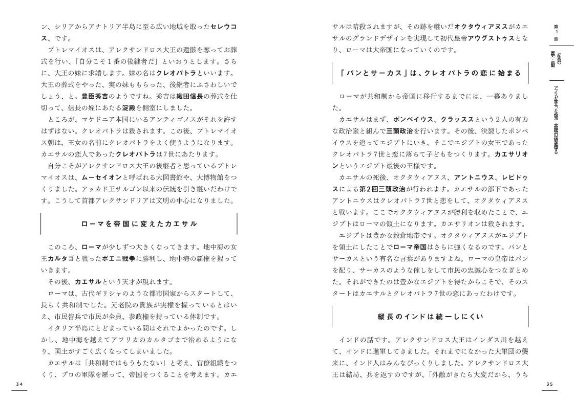 歴史が大好きな出口さんがこれまでつくってきた歴史の本は、どれもボリュームたっぷり。ですが、今回は、「人類5000年の歴史を7時間で読めて、大局がつかめる1冊がぜひほしい」という、日経ビジネス編集部の無茶ぶりを受けて、今までにない「一気に読める歴史本」に挑戦しました。7時間で読める分量に、日本史も西洋史も東洋史も、政治史も文化史も経済史も、全部つなげてまるごと盛り込みました。