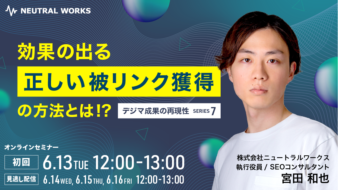 【6/13ウェビナー】SEO外部対策 効果の出る正しい被リンク獲得を解説【デジマ成果の再現性シリーズ⑦】