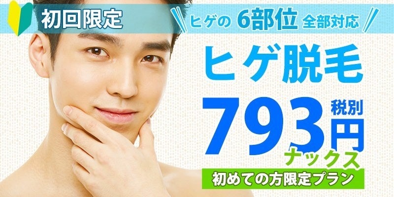 初回のお客様ヒゲ脱毛6部位(ヒゲ脱毛全体)が「793円」!