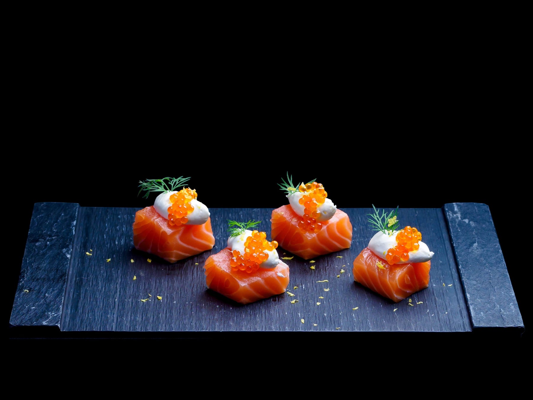 フレンチキャビアと香り豊かなディル、レモンピールを添えて新年らしい目にも鮮やかな前菜に仕上げました。