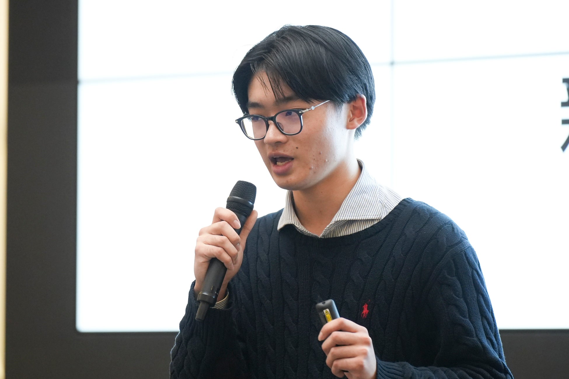 高校生部門では、基島隆蔵さん(高校2年生)が文部科学大臣賞を受賞。基島さんは、「独居高齢者が増加する現代において、高齢者のメンタル不調を電話を用い予防し、A Iを通した解析によって高齢者のメンタルヘルス予防に関連する課題を解決するアイデア」を披露しました。