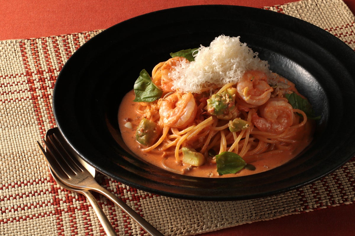 ぷりぷりの海老とアボカドのおいしさが、濃厚なトマトクリームソースでさらに引き立ちます。