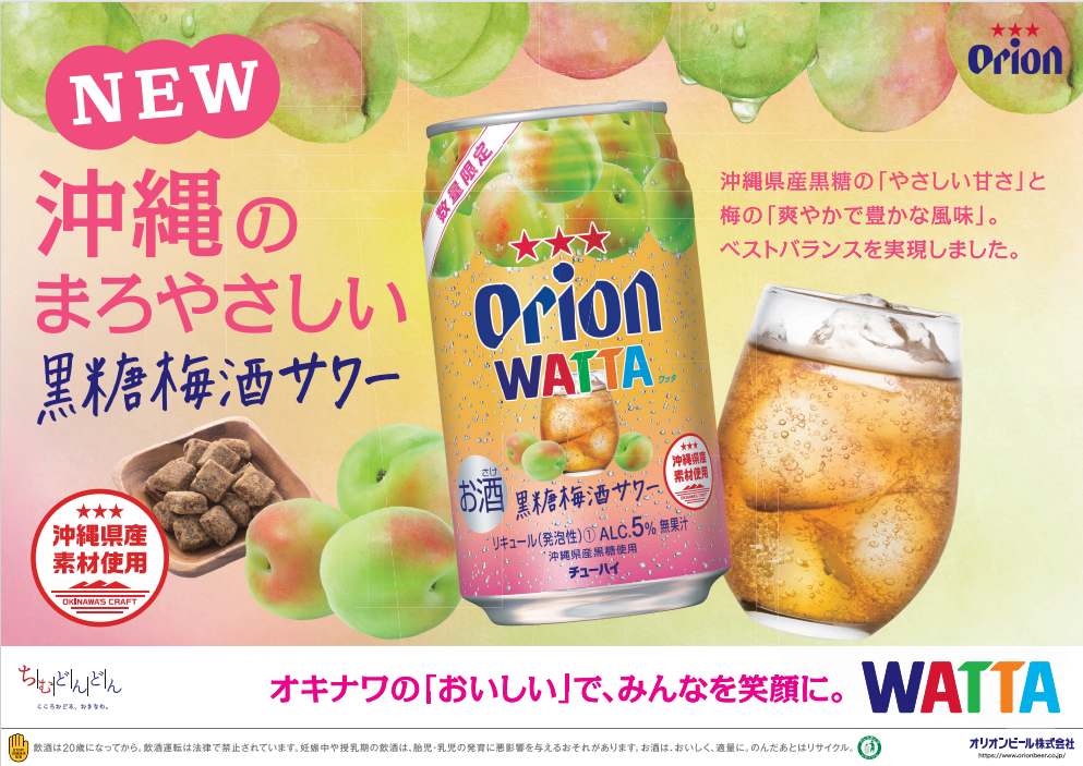 オリオンビール株式会社は、「WATTA(ワッタ)黒糖梅酒サワー」を数量限定で5月10日(火)「黒糖の日」に発売します。