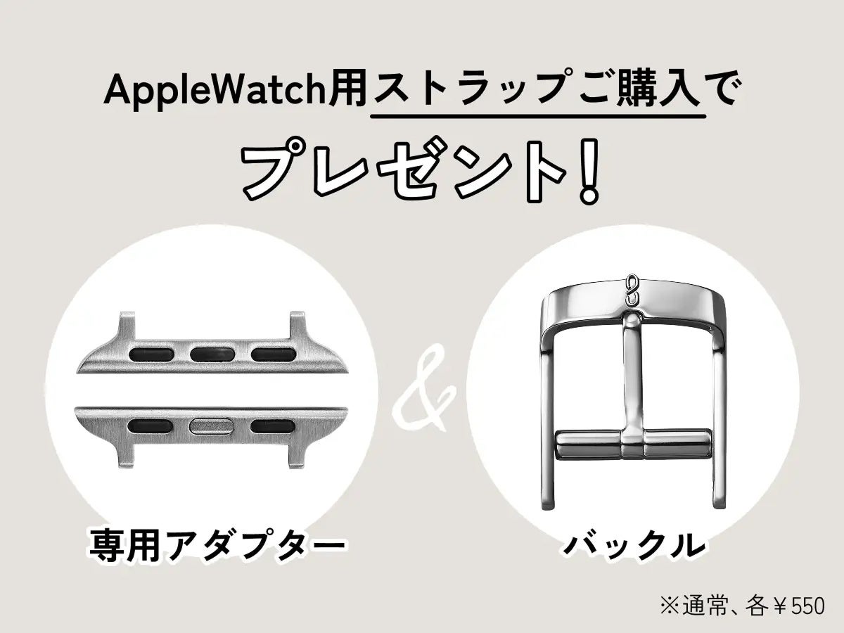 期間中Apple Watch用にストラップをお買い上げのお客様に専用アダプター(¥550)とバックル(¥550)をプレゼント。開催期間:4/24〜5/6