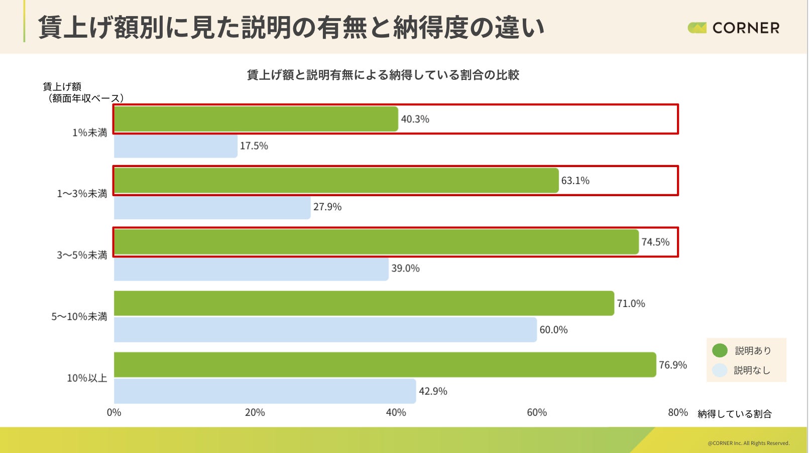 ・同程度の賃上げ幅でも、理由や将来の見通しなど説明の有無で納得度に差が見られる