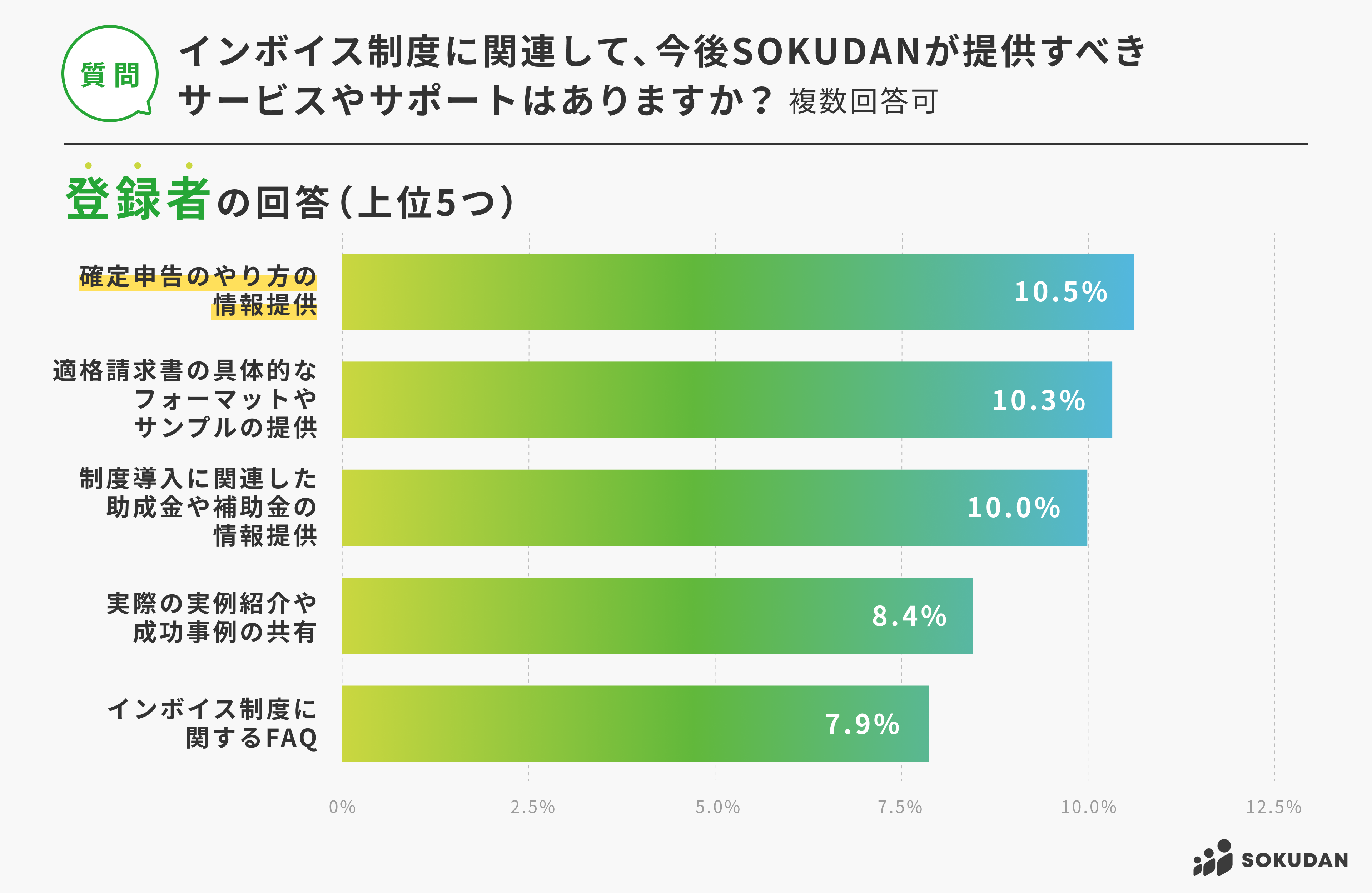 質問6「インボイス制度に関連して、今後SOKUDANが提供すべきサービスやサポートはありますか?(複数回答可)」