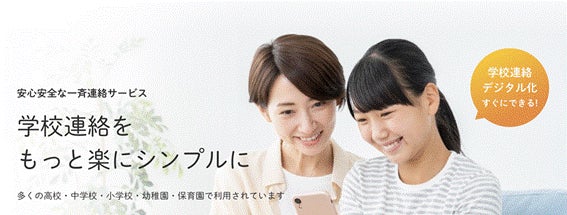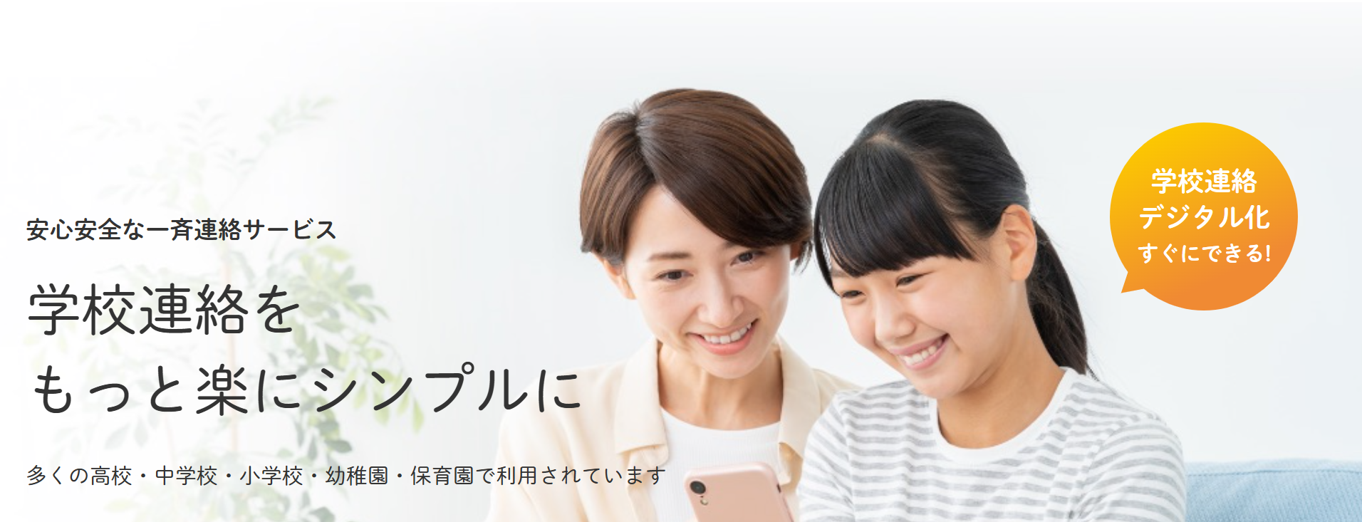 学校連絡をメールやスマホアプリといった複数の方法で、「安心」「便利」「楽」に受け取ることができるサービスです。