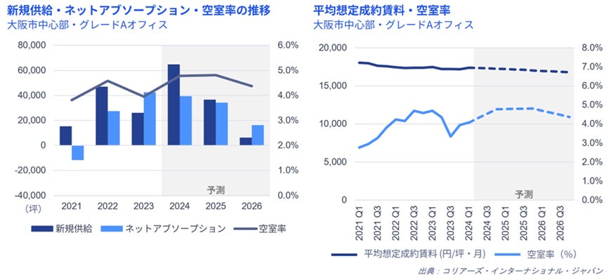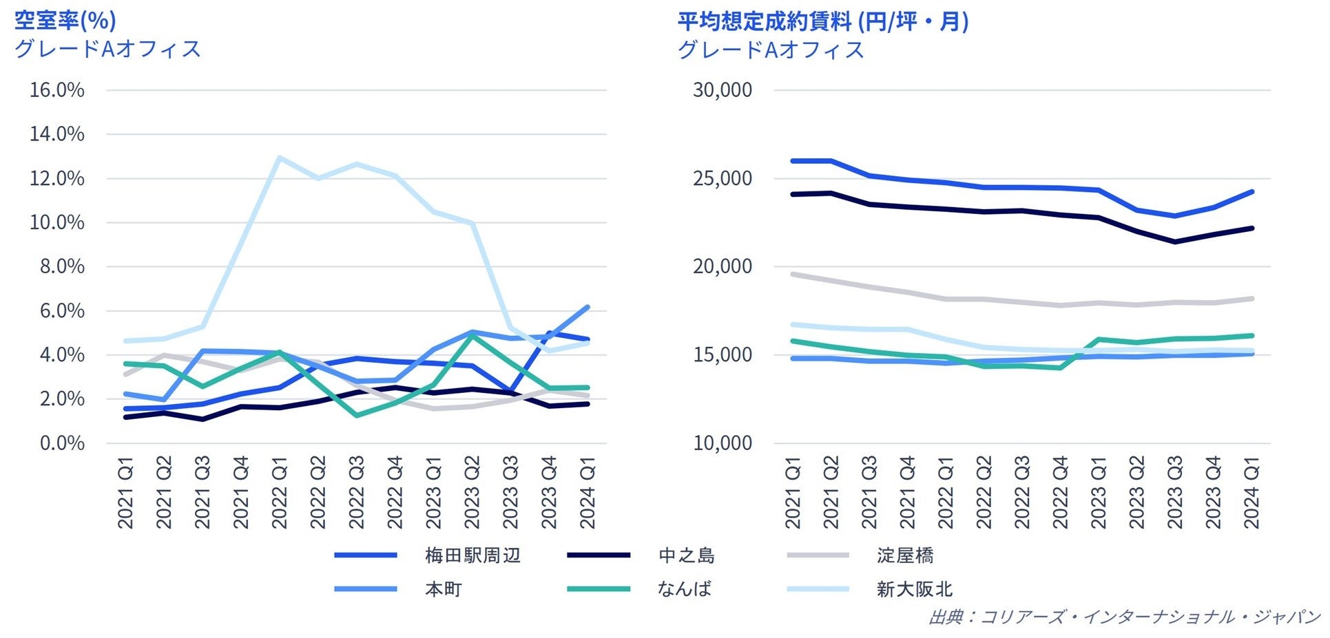 大手総合不動産コンサルティングサービス・投資運用会社であるコリアーズ・インターナショナル・ジャパン株式会社(代表:小笠原 行洋、本社:東京都千代田区、NASDAQおよびTSX:CIGI、以下コリアーズ・ジャパン)は、本日、「大阪オフィスマーケットレポート|2024年第1四半期(1‐3月期)大阪市中心部・グレードAオフィス ※1」を発表しました。当レポートは、コリアーズ・ジャパンが、大阪市のグレート A オフィスビルの賃貸オフィス市況と今後の見通しについて、独自に収集したデータに基づいて分析したものです。