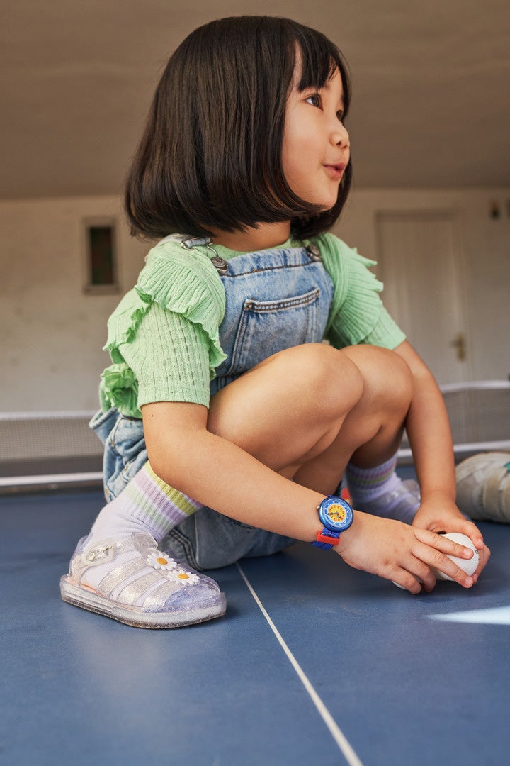 フリックフラックは、世界で最も人気のあるキッズ用ウォッチとして、1987 年の誕生以来、あらゆる場所でキッズたちを導いてきました。時間を伝えるという概念を、身近な楽しみとエンターテイメントに変換した最初のキッズ用ウォッチです。フリックフラックのウォッチはすべてスイスメイドで、BPA フリーの素材を使用しています。ヘッド、ループ、タン、バックルはヒマシから作られたRilsan® 素材でできており、テキスタイル ストラップはペットボトルのリサイクルによって生まれました。スイスメイドのクオーツムーブメントを搭載し、耐衝撃性があり、40ºCまでの温度で洗濯機洗いが可能です。フリックフラックは、スイスに の製造拠点を持つ世界最大の時計製造販売業者であるスウォッチグループのブランドです。