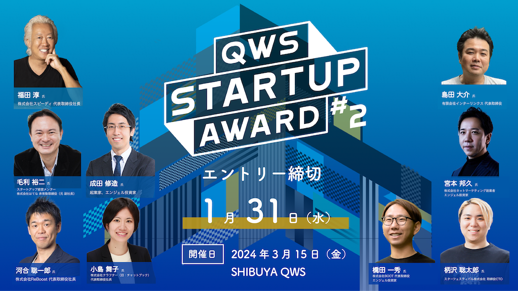 スタートアップのための社会と事業を一歩促進するピッチアワード「QWS STARTUP AWARD#2」最終審査員が決定!大企業や自治体など第一弾協賛パートナーも決定!