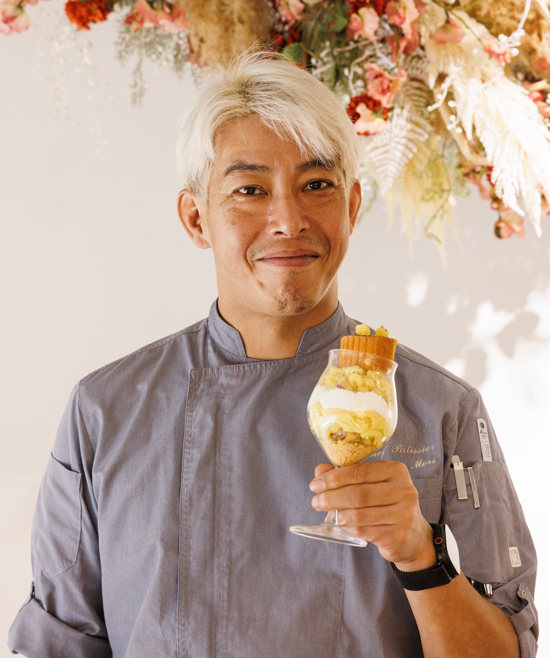 「ふんわり伊達巻ブリュレとおいものモンブラン」を考案したのは、名だたるスイーツの国際コンクールで多数の優勝歴を持つ、森大祐シェフ。その名の通りふんわりとしたシフォンケーキのような食感の「ふんわり伊達巻」が主役となり、サツマイモのモンブランと合わせて味わうことで、伊達巻の塩味とサツマイモの甘味の絶妙なバランスをお楽しみいただけます。森シェフは「伊達巻の断面に砂糖をふりかけ、バーナーで焦がしてカラメルにするだけの伊達巻ブリュレは、誰でも簡単に作れるので、アイスクリームと合わせたりして家庭でも楽しんでもらえたら。」と今回のレシピに込めた思いを語っています。
